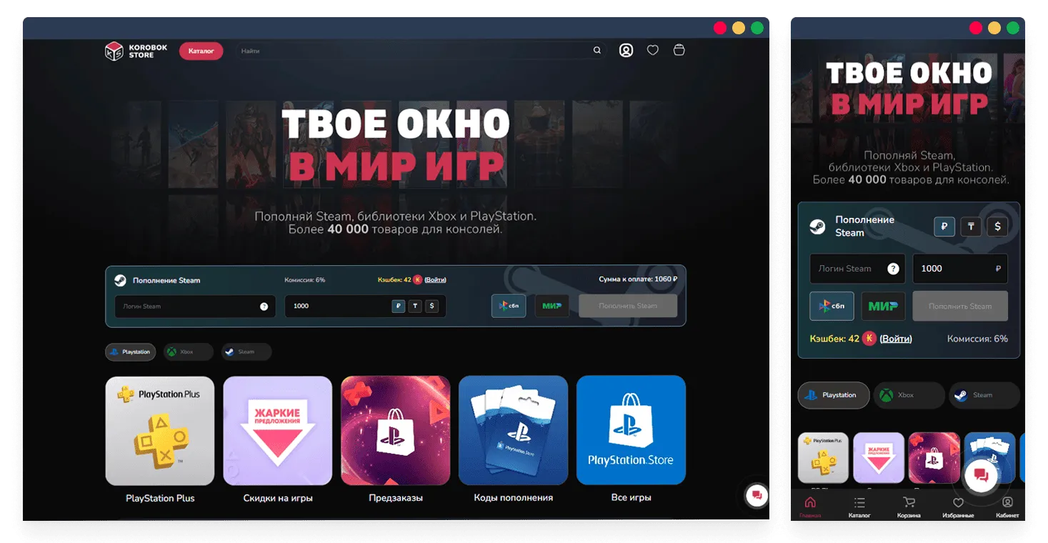 Внедрили и настроили модуль «Умный поиск» для быстрого поиска игр и подписок.