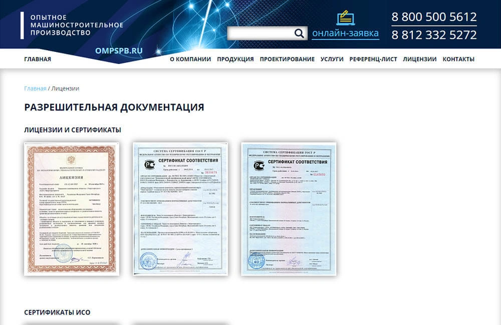 • Сайт машиностроительного производства